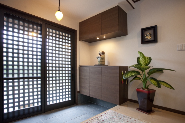 洋室と同時に、玄関にもエコカラットを使用しました。