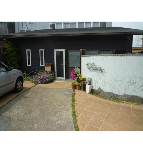 外は鉄鋼で庇を取付、内は2Fを事務所、1Fを作業場及び倉庫。
